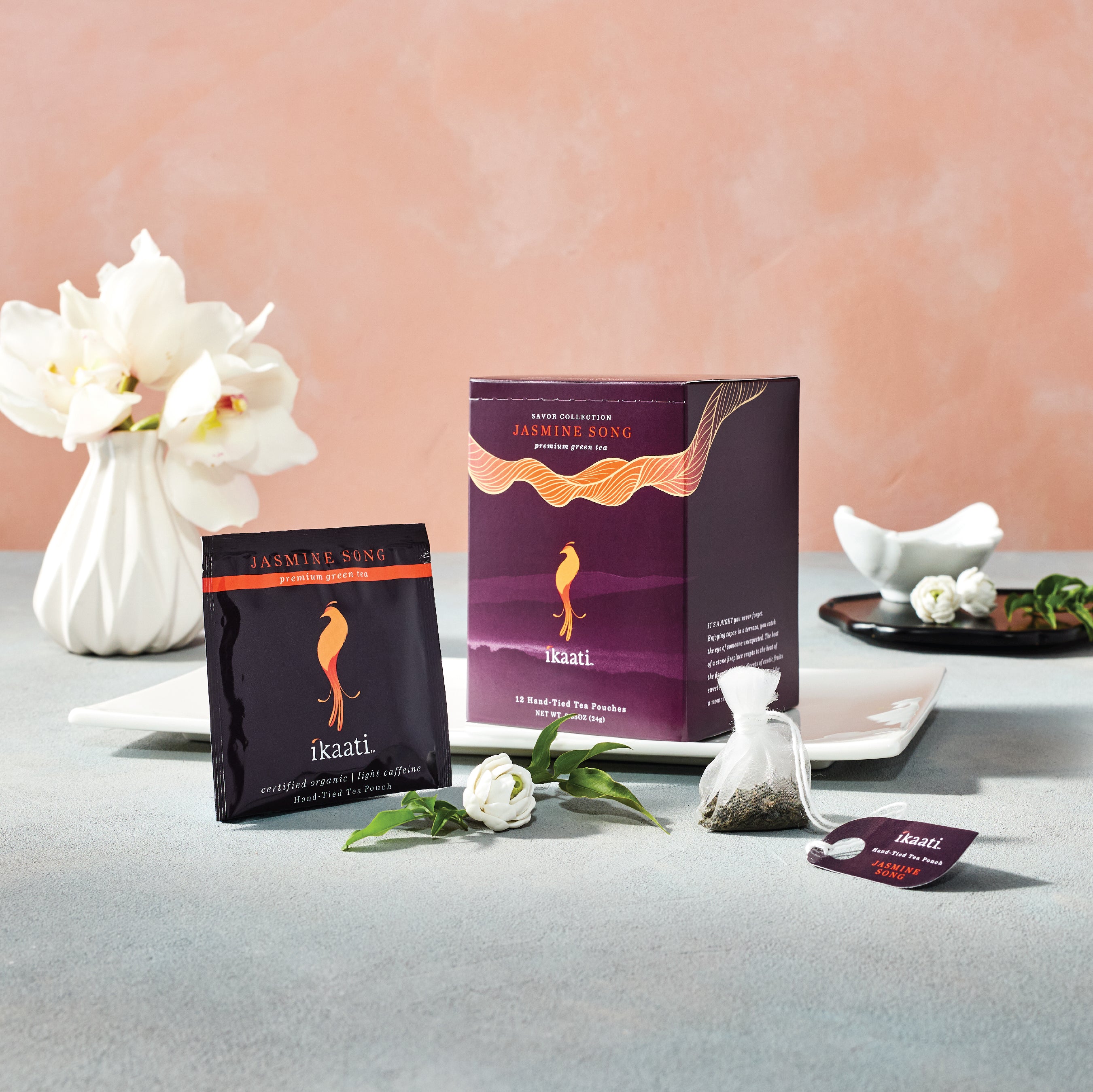 Tender spring-harvest green tea lavished with fresh jasmine blossoms, this enchanting tea captivates the heart and delights the senses.